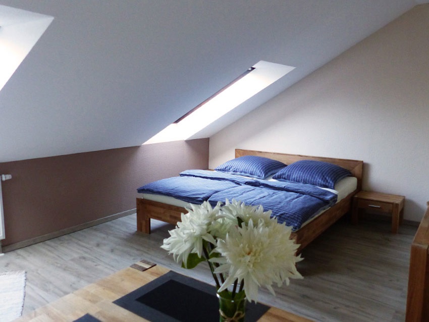 Doppelzimmer im Dachgeschoss mit kombiniertem Wohn- und Schlafbereich und zwei Einzelbetten (zum Doppelbett stellbar)