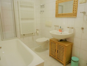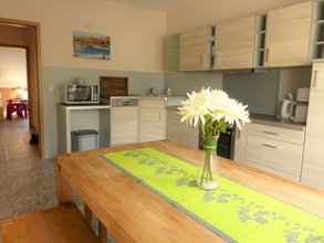 - familienfreundliche Ferienwohnung im Dachgeschoss mit kombiniertem Wohn-/Schlafzimmer (Doppelbett, Schlafcouch, großer Kleiderschrank) und Kinderzimmer mit Doppelstockbett und Spielbereich
