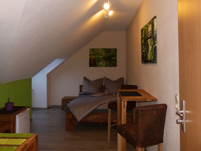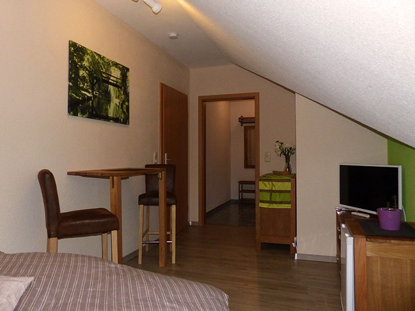 - kleines Einzelzimmer im Dachgeschoss: kombinierter Wohn- und Schlafbereich mit Doppelbett (1,40m breit - keine Aufbettung möglich)